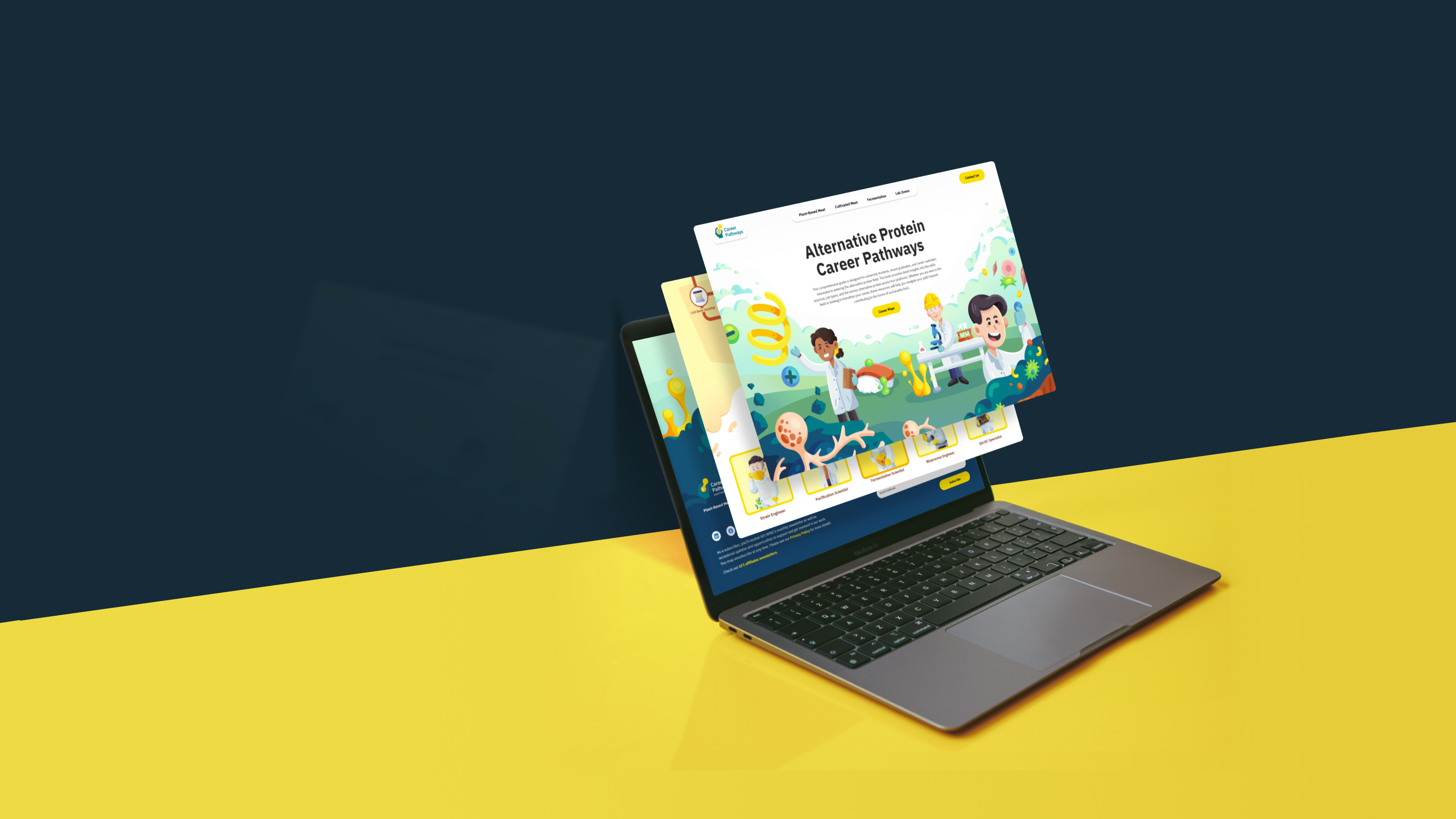 The final website features a clean, intuitive design and engaging educational content, successfully positioning GFI Career Pathways as a trusted resource in the alternative protein space.